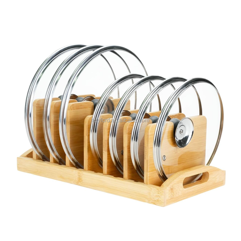 Organizador de tapa de olla de bambú de alta calidad, soporte para tapa de olla, estante para platos, tablas de cortar de bambú, soporte para tapa de plato